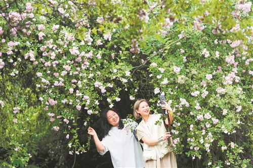 4月27日,游客在重庆市黔江区阿蓬江国家湿地公园花卉园赏花、游玩。新华社发(杨 敏摄)