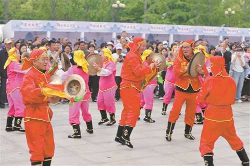 4月27日,在河南省驻马店市汝南县,民俗艺人为游客表演节目。新华社发(张 萌摄)