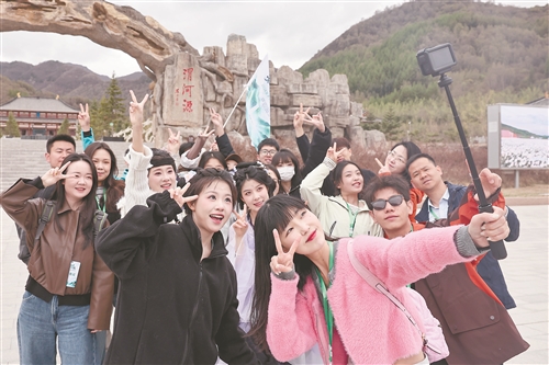 4月27日,文旅达人在甘肃省定西市渭河源景区打卡。新华社发(侯崇慧摄)